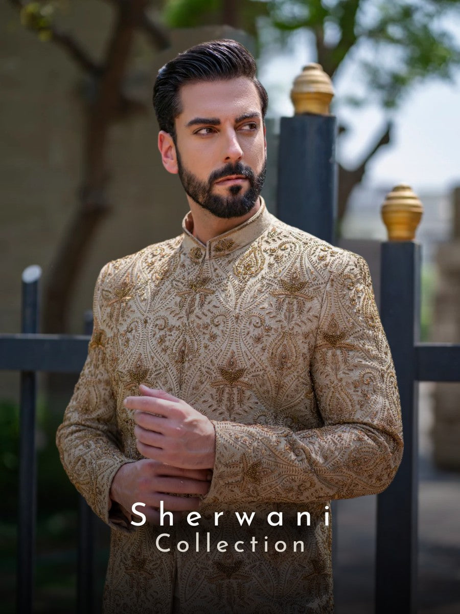 gold Zari embroidery sherwani