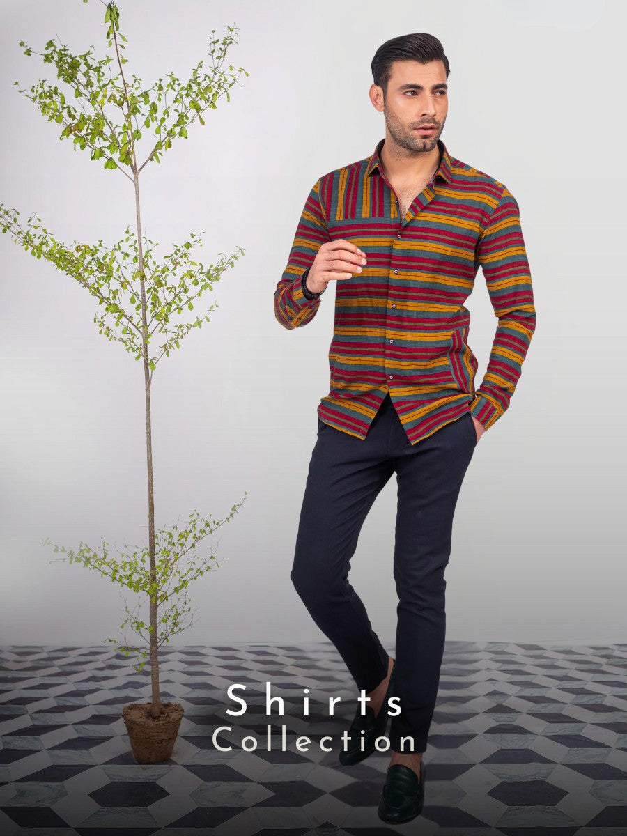 Quickshop Multi-Stripe Thai Cotton Shirt, styled with a classic collar and full sleeves...